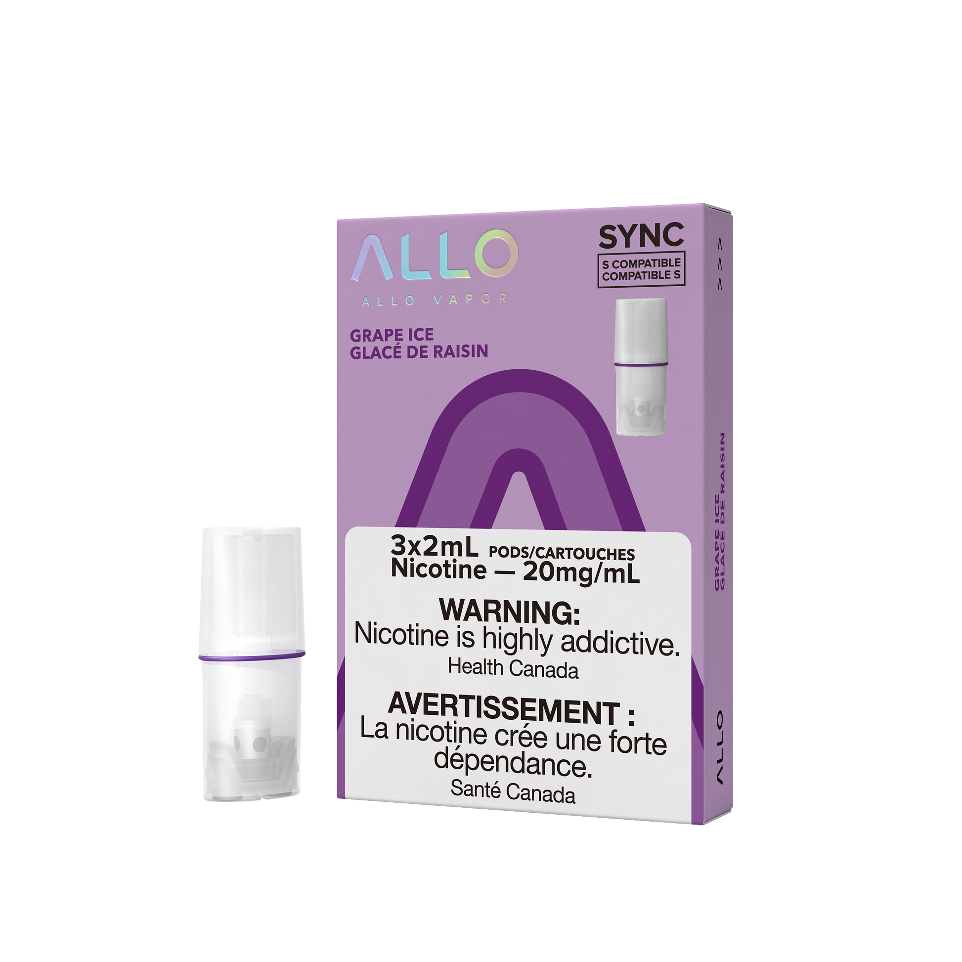 • 3 x Allo Sync Grape Ice 20mg/mL Pods