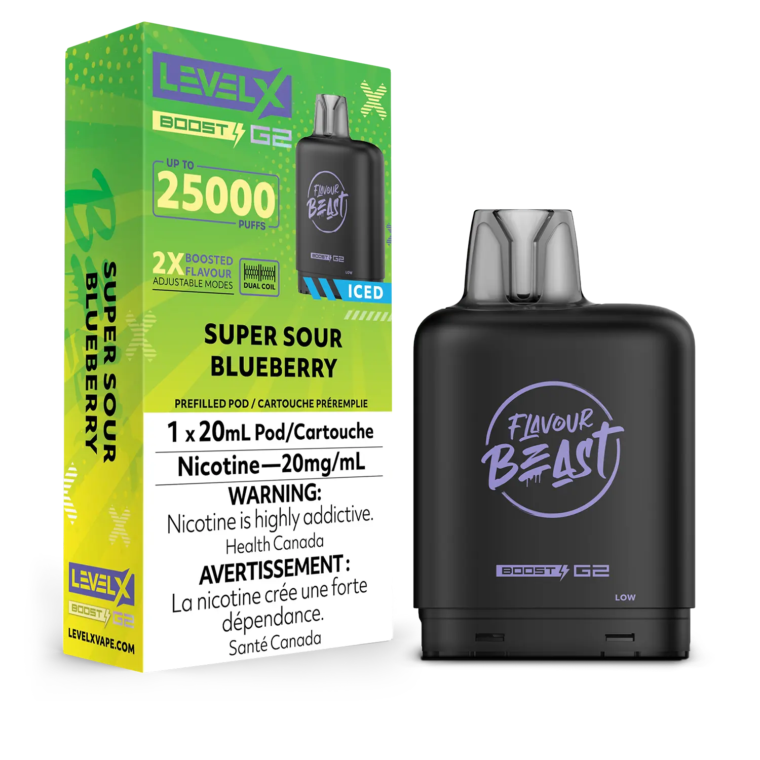 Flavour Beast LevelX Boost Pod G2 25K Super Sour Blueberry Iced 20mg (Provincial)
