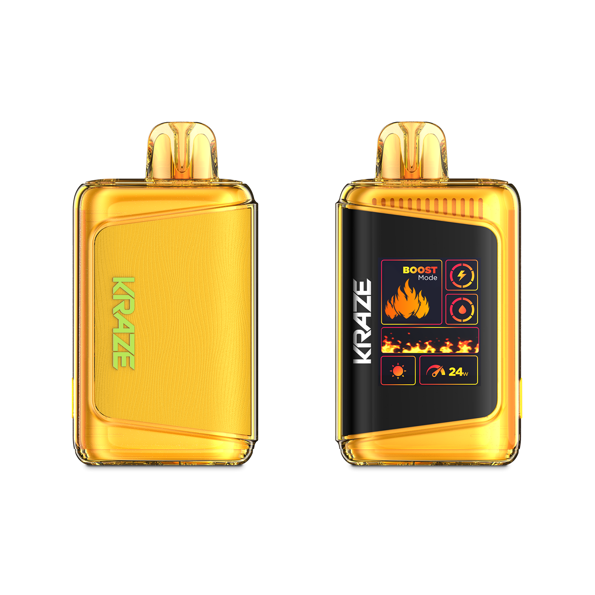 Introducing the Kraze HD Mega, a vaping game-changer. Featuring the largest 1.77-inch OLED screenin Canada. With enhanced dual-coil technology, 20mL e-liquid capacity, and up to 20,000 puffs, it ensures ultimate flavour satisfaction and long-lasting performance. The customizable experience includes Boost 24W/NormaI 12W modes, airflow control. Its user-friendly design includes a light & dark mode toggle, battery, and e-liquid indicators. It's time to go Krazy with the Kraze HD Mega.