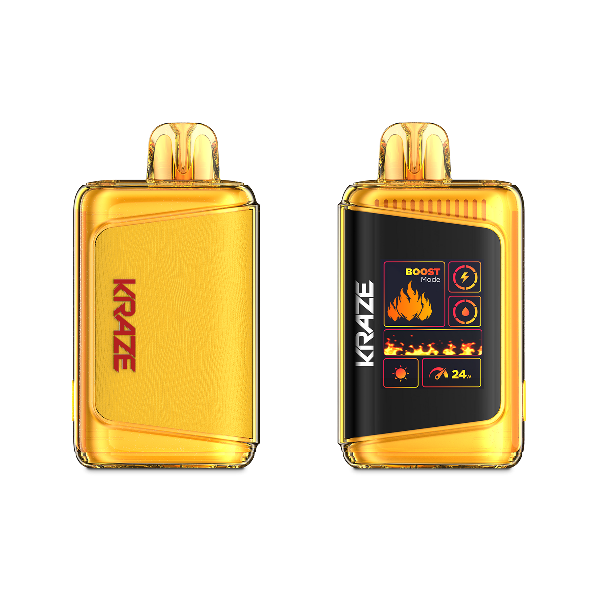 Introducing the Kraze HD Mega, a vaping game-changer. Featuring the largest 1.77-inch OLED screenin Canada. With enhanced dual-coil technology, 20mL e-liquid capacity, and up to 20,000 puffs, it ensures ultimate flavour satisfaction and long-lasting performance. The customizable experience includes Boost 24W/NormaI 12W modes, airflow control. Its user-friendly design includes a light & dark mode toggle, battery, and e-liquid indicators. It's time to go Krazy with the Kraze HD Mega.
