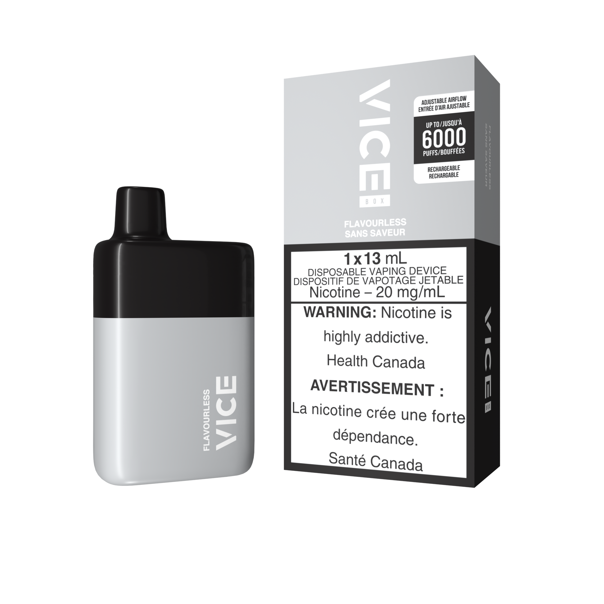 Flavourless Vice Box Disposable Vape is a no flavour disposable vape, pure satisfying throat hit. Rechargeable and super tasty device, now equipped with a 1.2ohm non replaceable coil, capable of up to 6000 juicy puffs.
